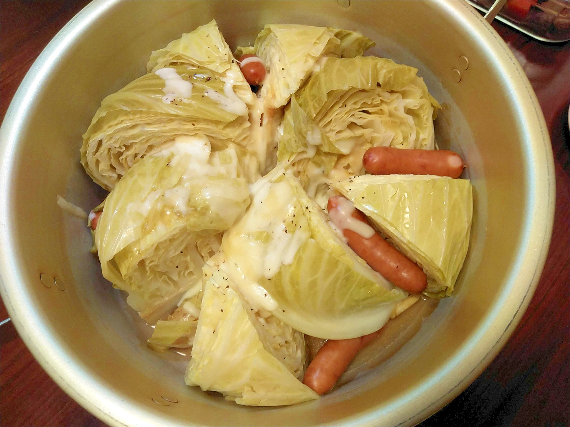 キャベツ丸ごとスープ 同時に熱々ソーセージも レシピ 作り方 By Iihi009 楽天レシピ